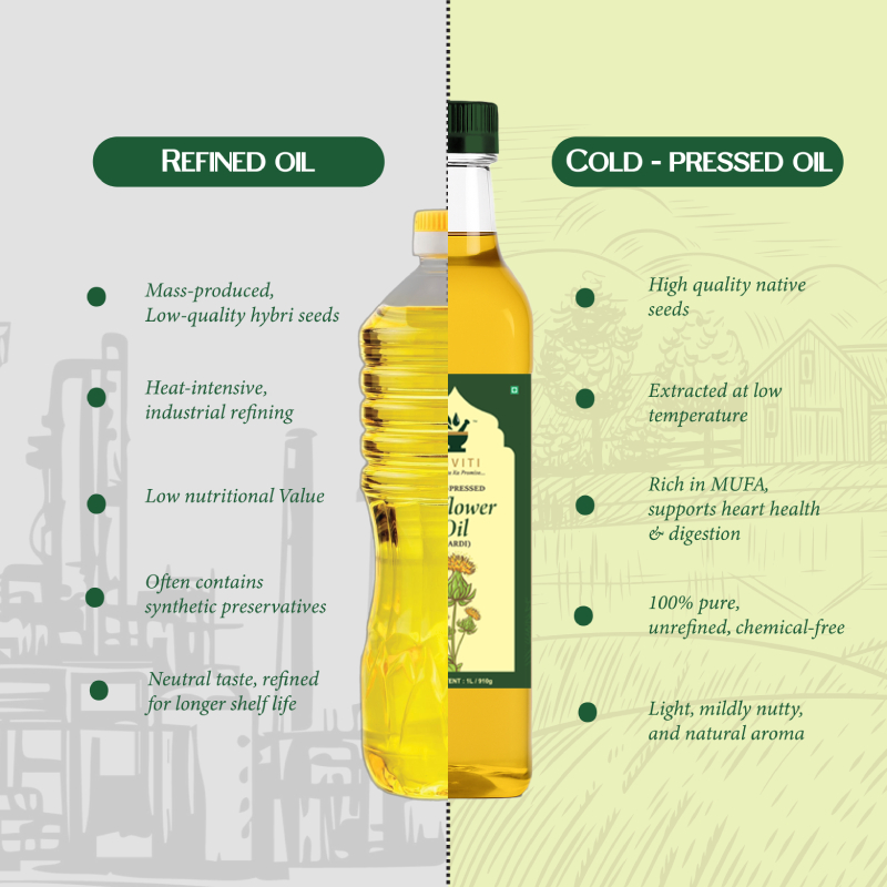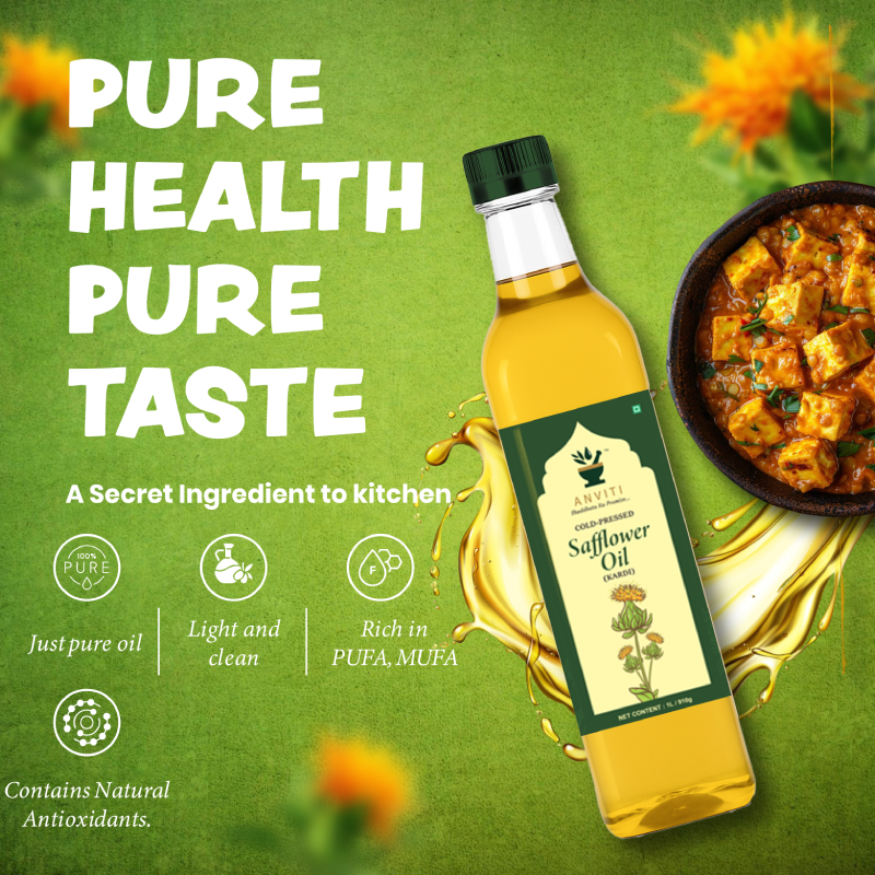 Ideal for traditional Indian cooking, pickling, frying, or raw use — Anviti Safflower Oil adds depth, flavor, and purity to every dish.