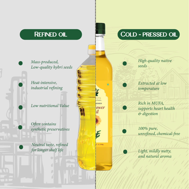 Sourced from the finest, sun-ripened sunflower seeds to ensure a bright golden colour, smooth texture, and high nutritional value in every drop.
